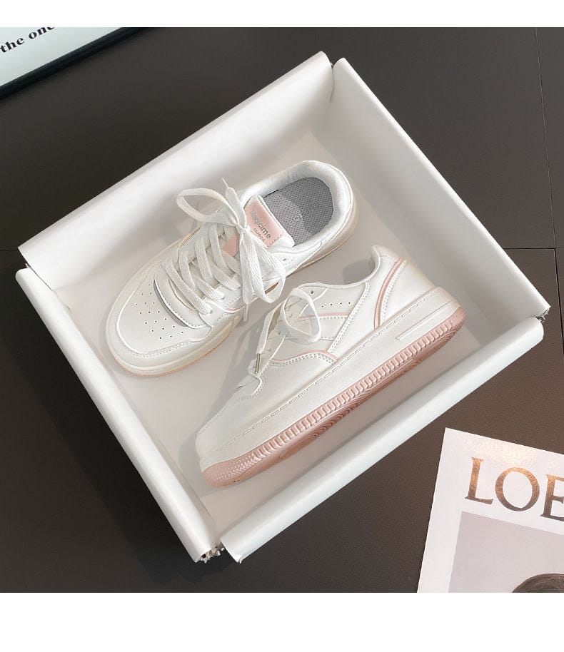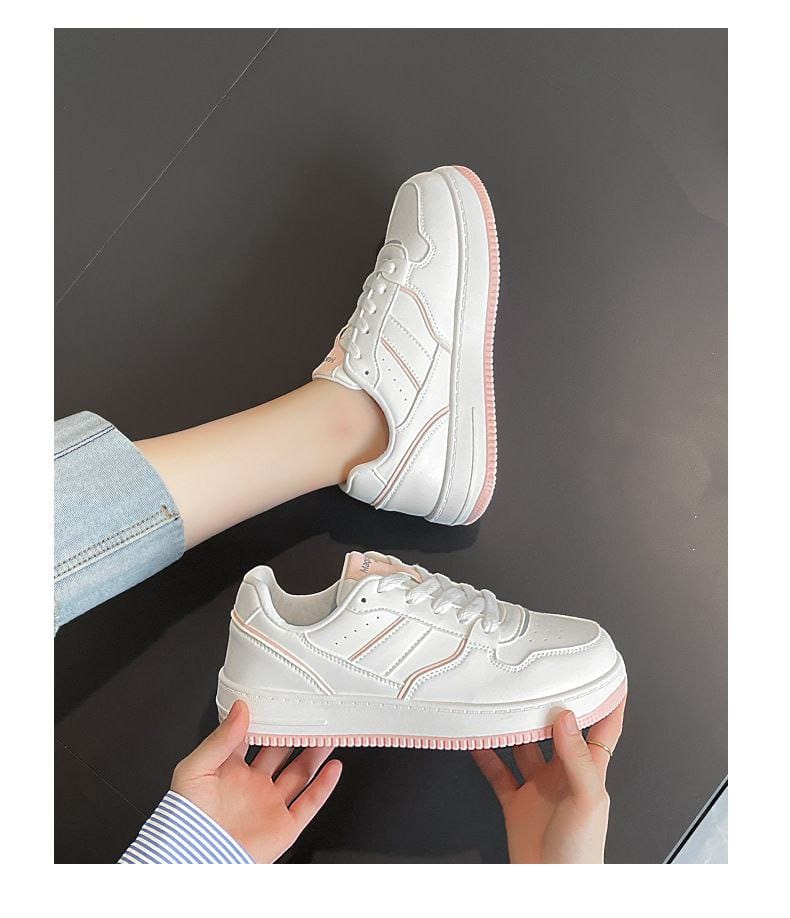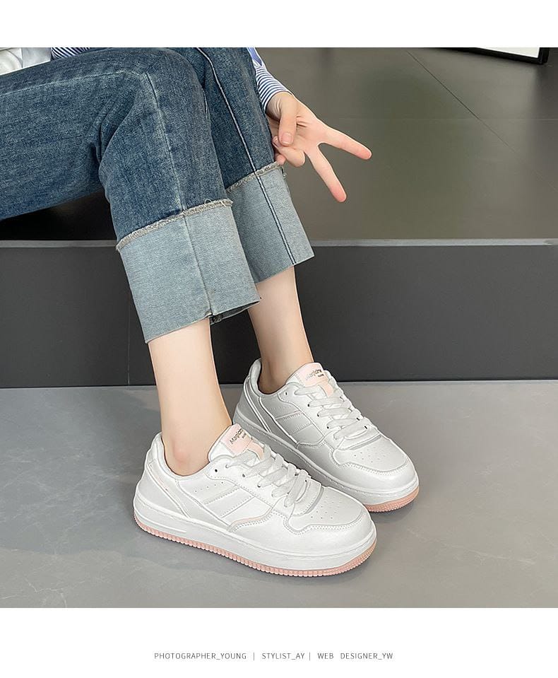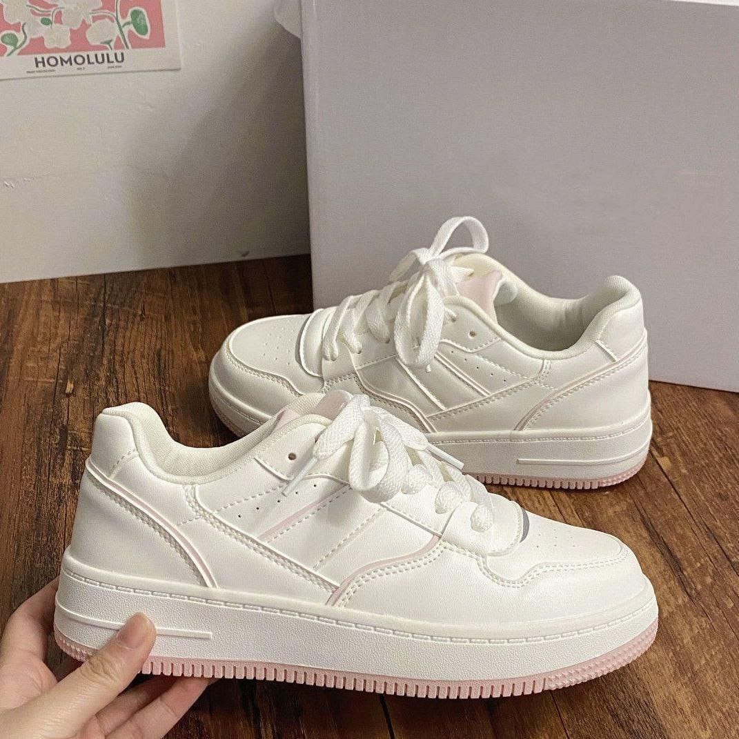 White sneakers are a wardrobe essential, and Blush Edge Classic Sneakers elevate this staple with a refined pink edge detail. The soft blush sole accent adds a gentle pop of color without overpowering the clean design. This balance keeps the sneakers modern, feminine, and easy to style.